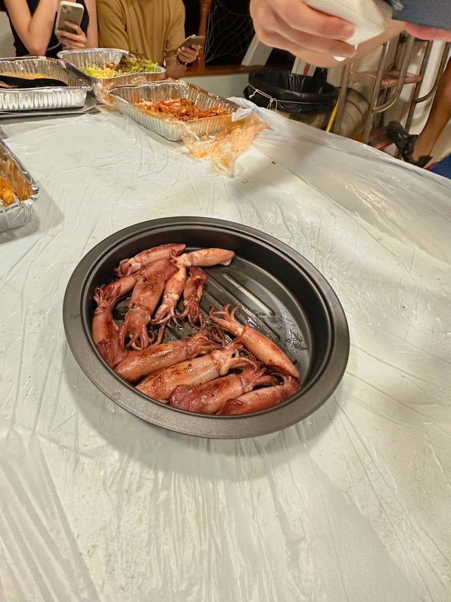 - Cuttlefish fishing tools are provided. Fresh-caught cuttlefish are cooked for free.