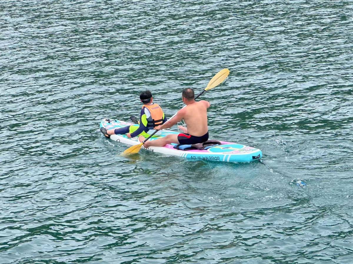 We also enjoyed stand-up paddleboarding, which gave us a great workout for the day. Some of my friends even managed to ride the SUP all the way to shore.